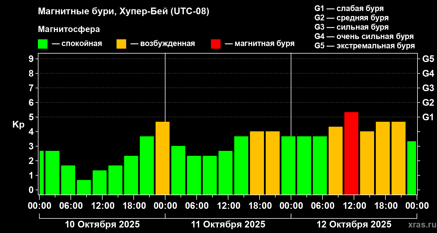 Магнитные бури в Хупер-Бейе 12 октября 2025 года