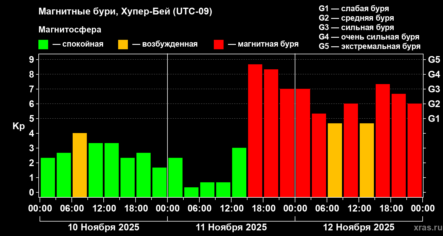 Магнитные бури в Хупер-Бейе 12 ноября 2025 года