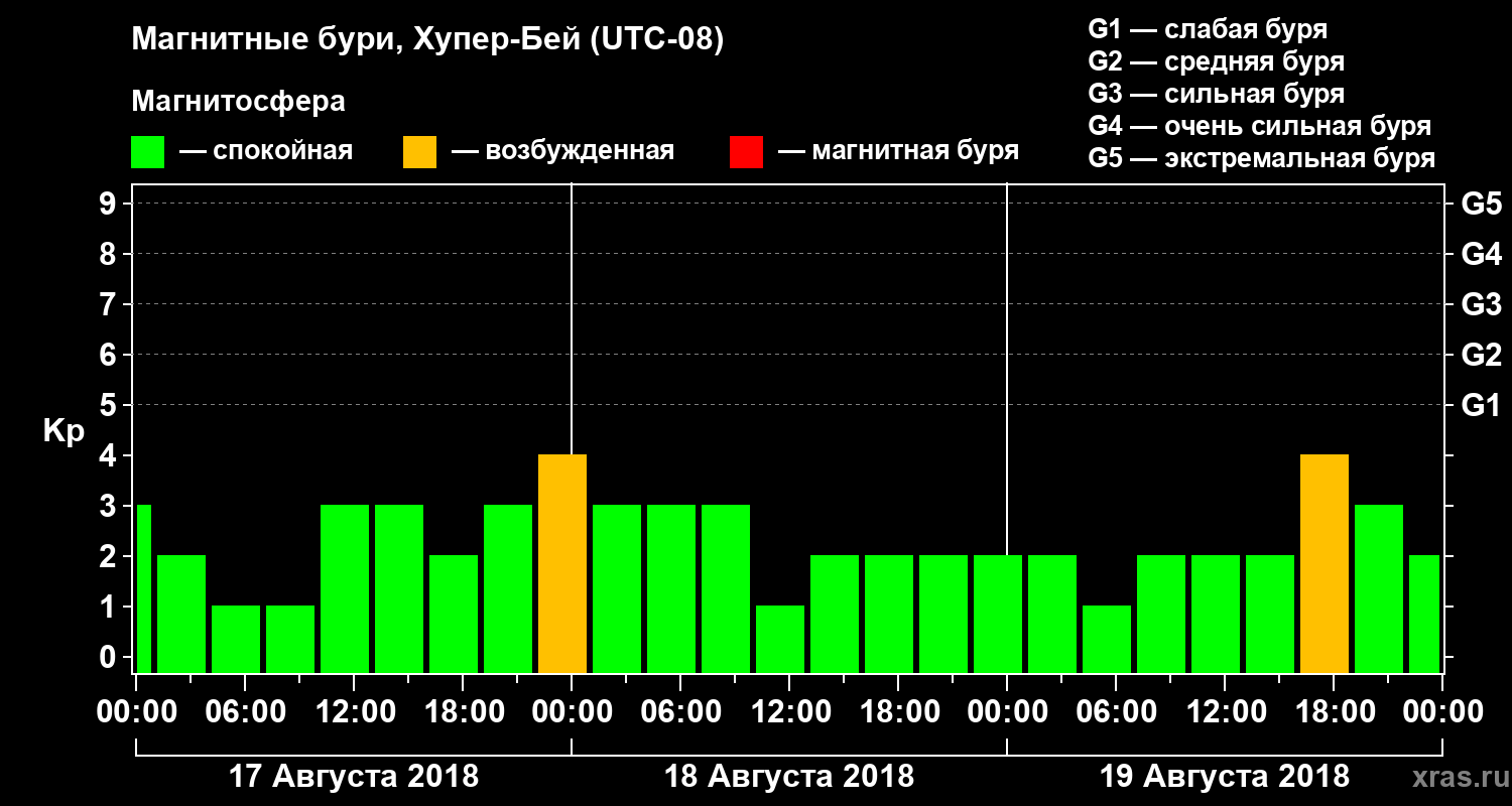 Магнитные бури в Хупер-Бейе в августе 2018 года