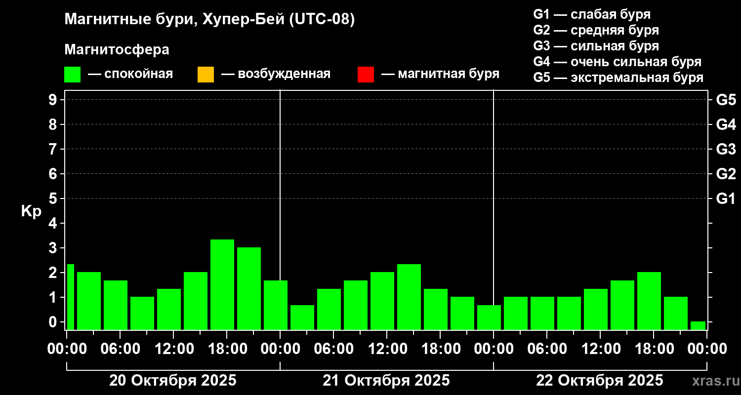 Магнитные бури в Хупер-Бейе — 22 октября 2025 года