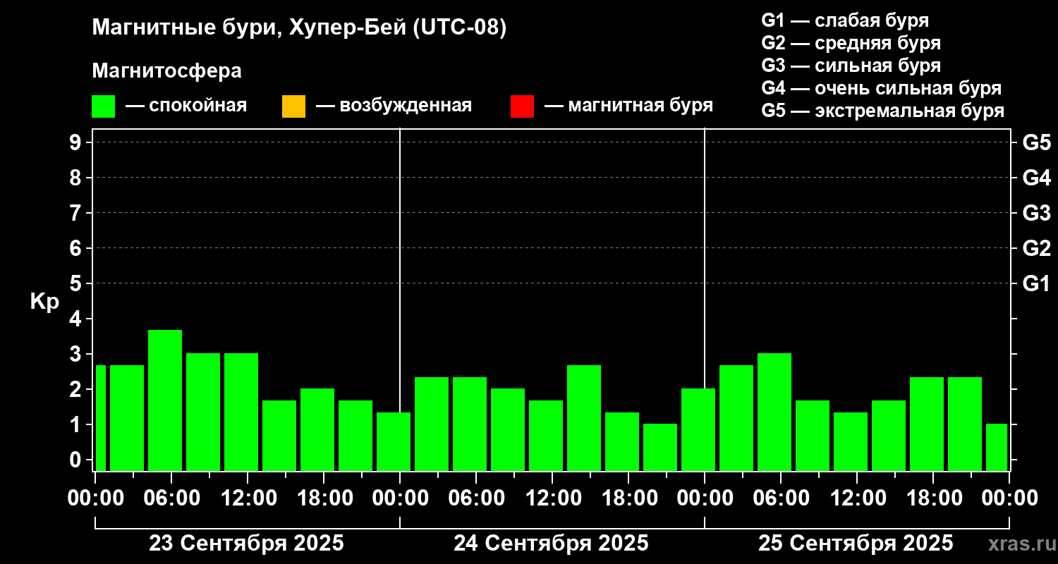 Магнитные бури в Хупер-Бейе 25 сентября 2025 года