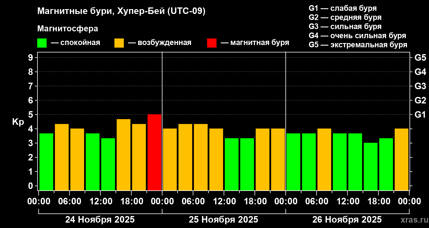 Магнитные бури в Хупер-Бейе — 26 ноября 2025 года
