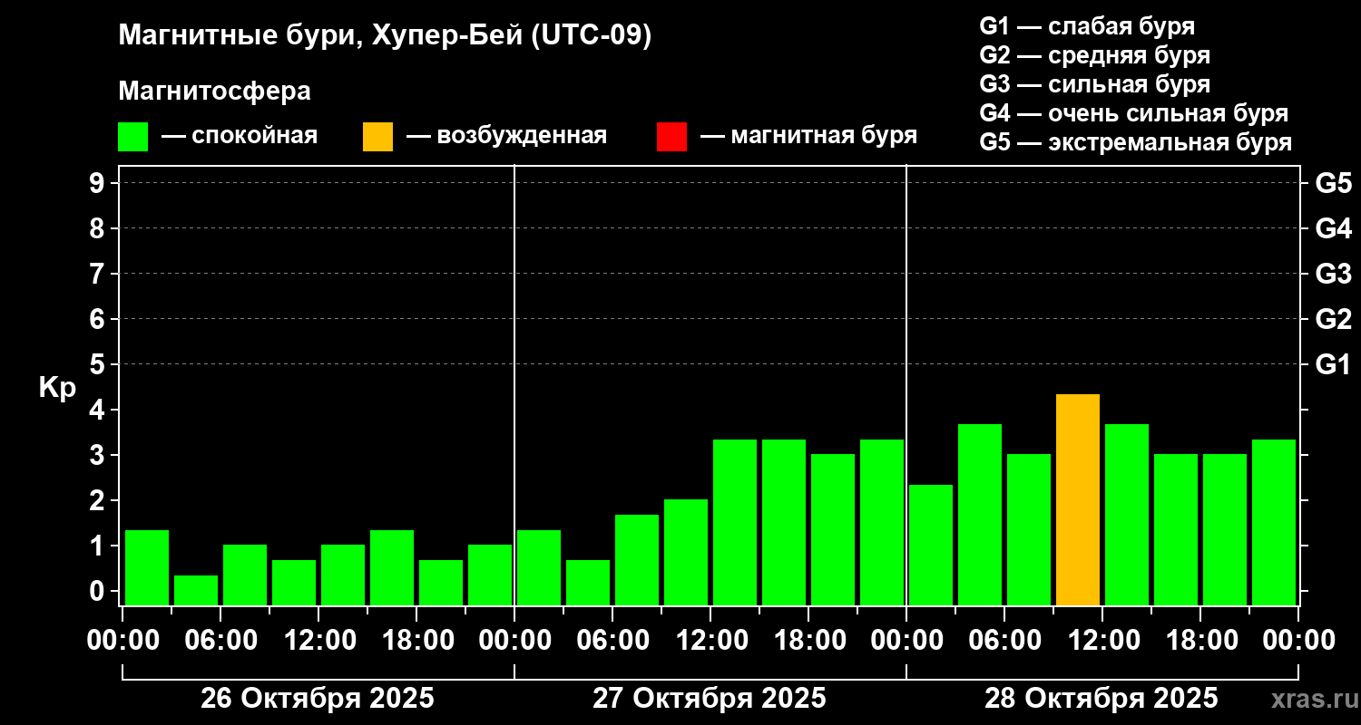 Магнитные бури в Хупер-Бейе — 28 октября 2025 года