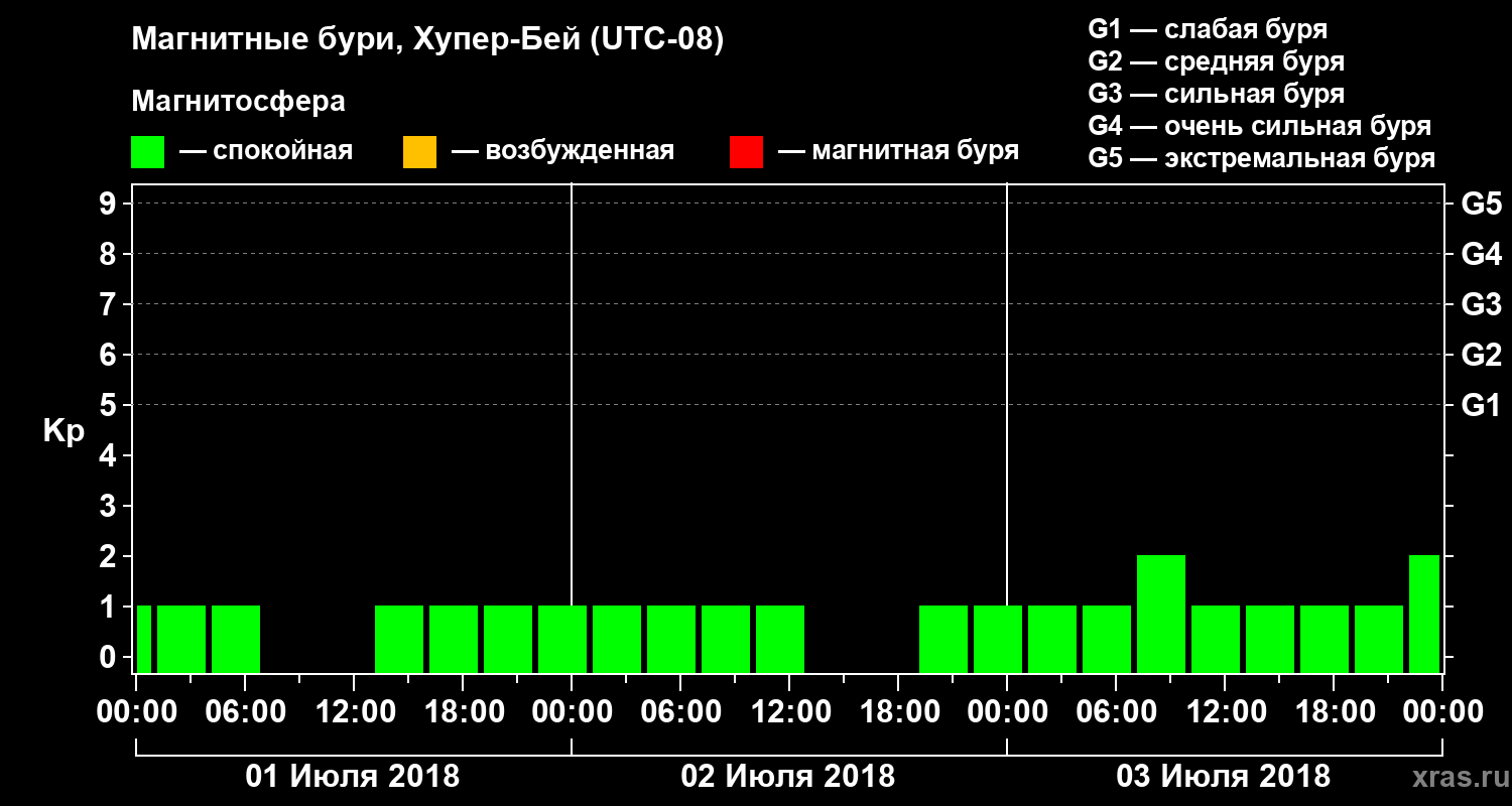 Магнитные бури в Хупер-Бейе 3 июля 2018 года