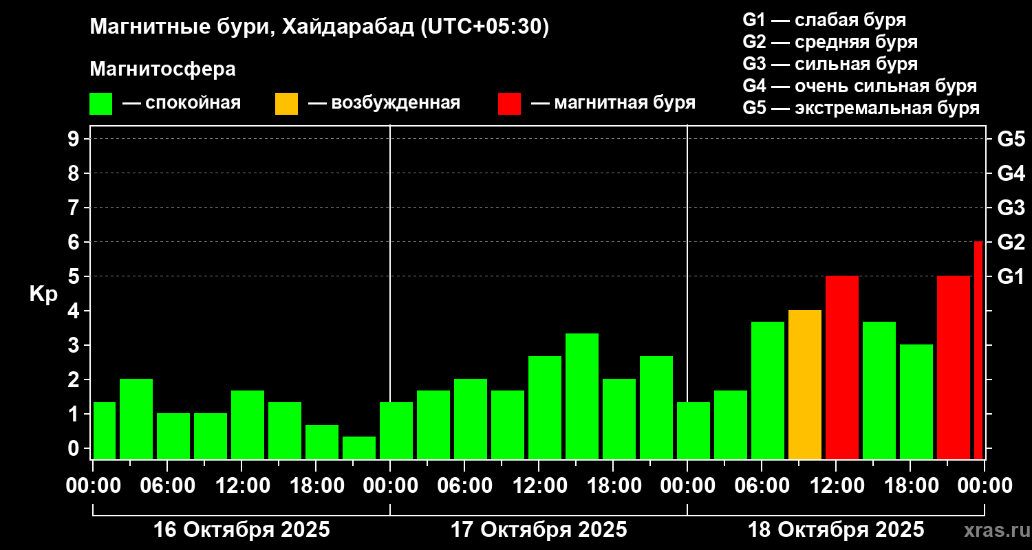 Магнитные бури в Хайдарабаде — 18 октября 2025 года