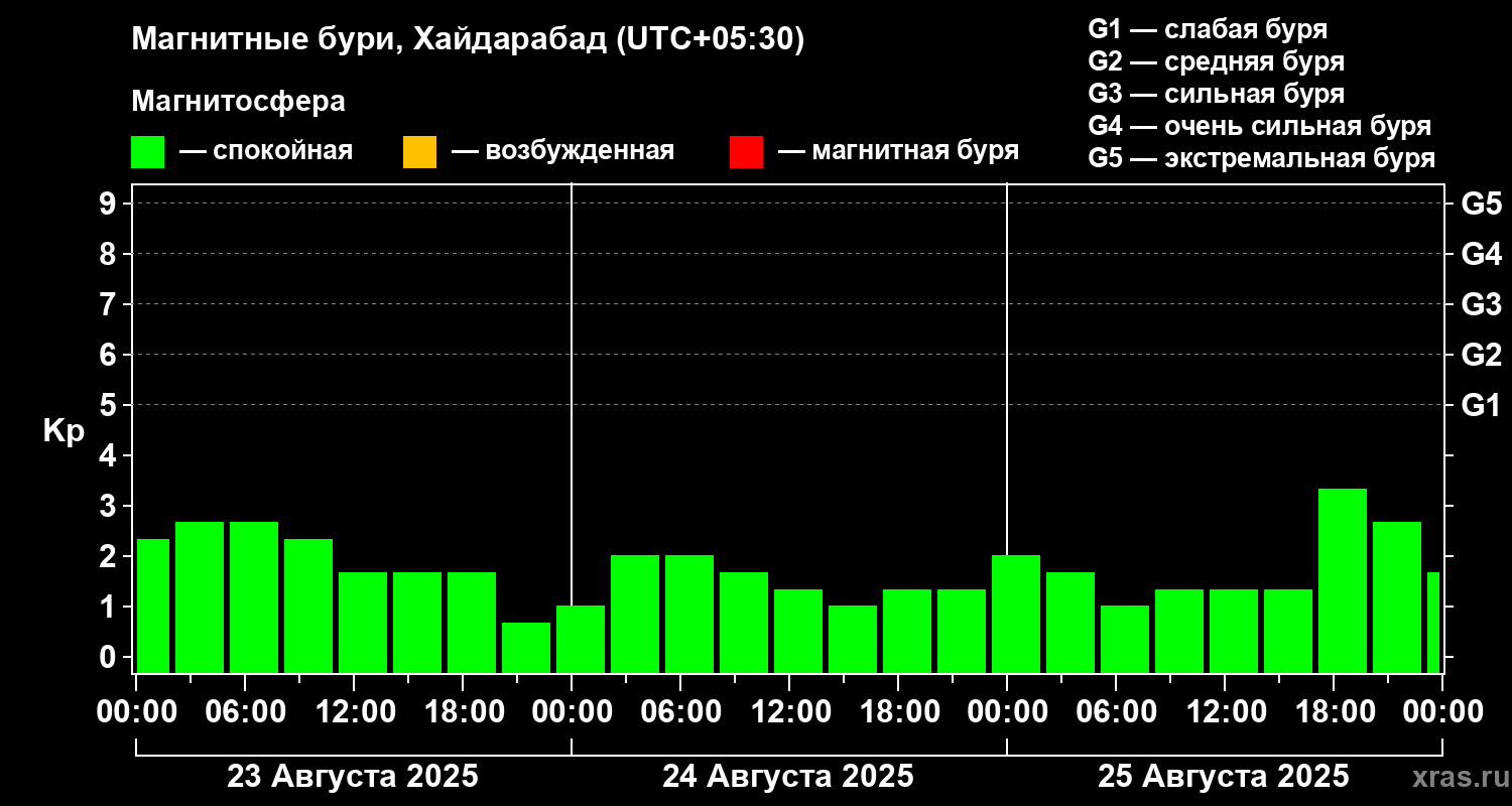 Магнитные бури в Хайдарабаде — 25 августа 2025 года