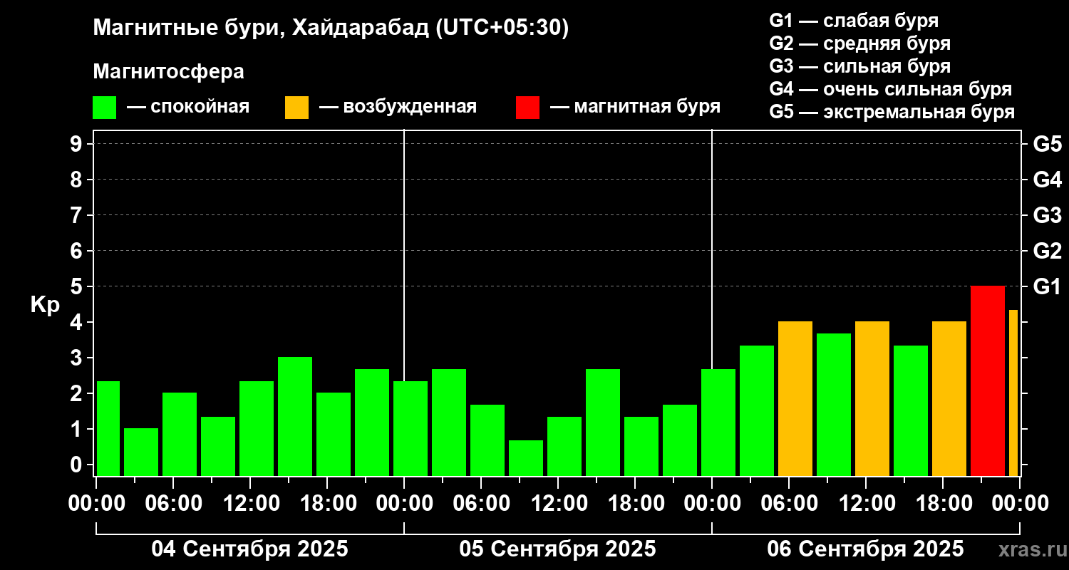 Магнитные бури в Хайдарабаде — 6 сентября 2025 года