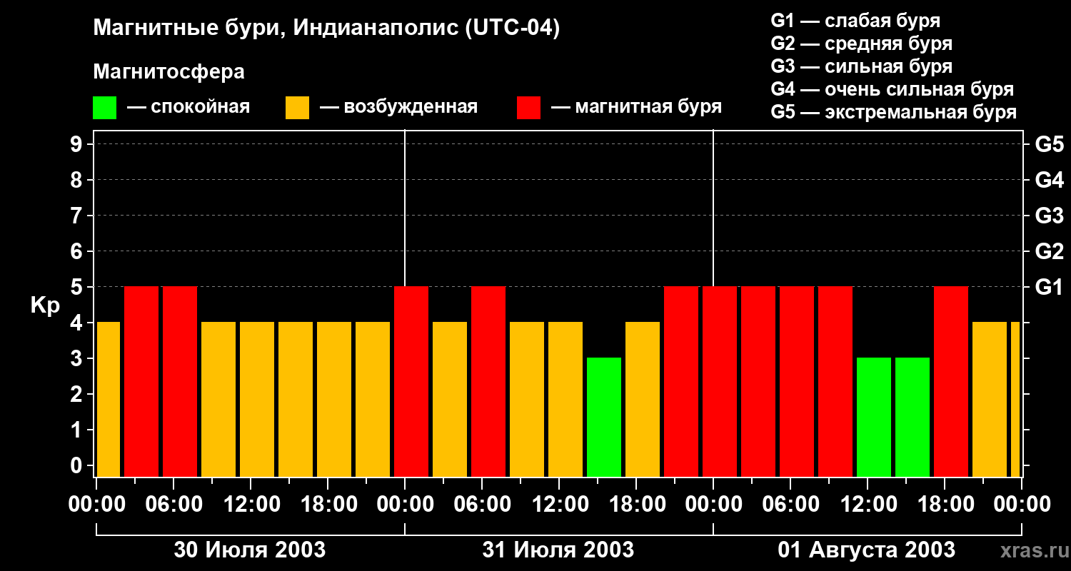 Магнитные бури в Индианаполисе 1 августа 2003 года