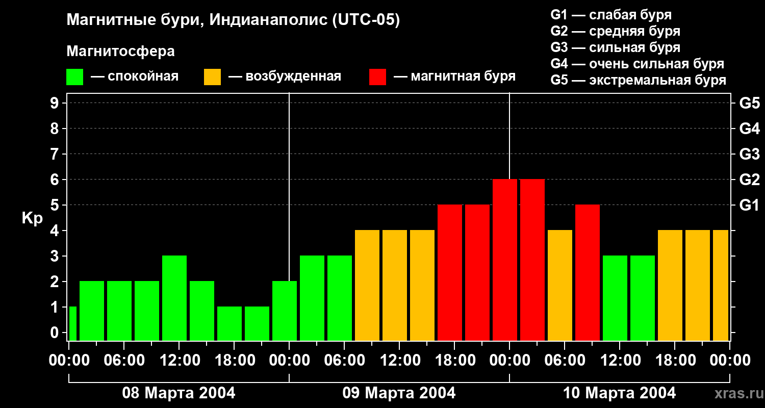 Магнитные бури в Индианаполисе — 10 марта 2004 года