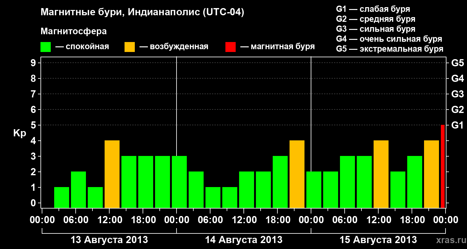 Магнитные бури в Индианаполисе 15 августа 2013 года