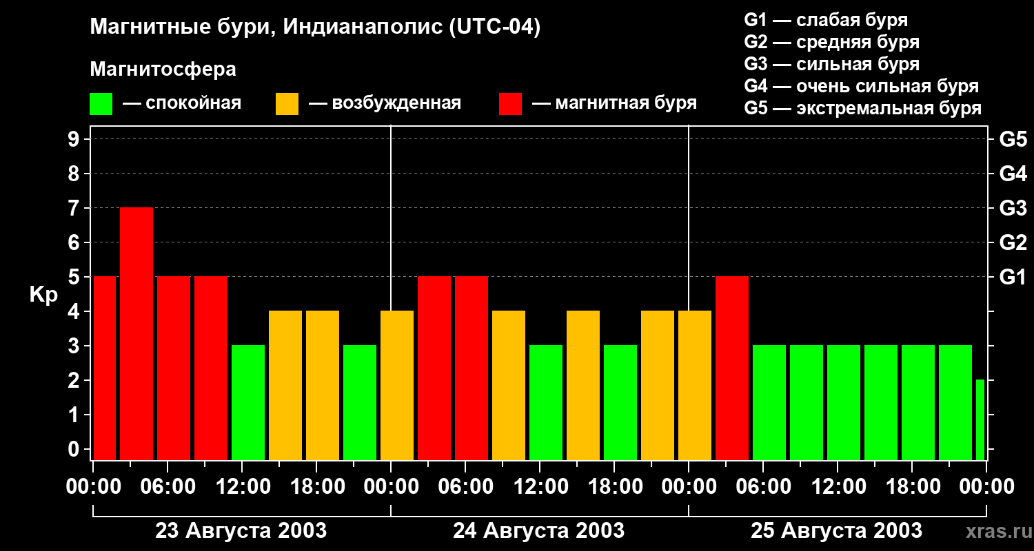 Магнитные бури в Индианаполисе 25 августа 2003 года