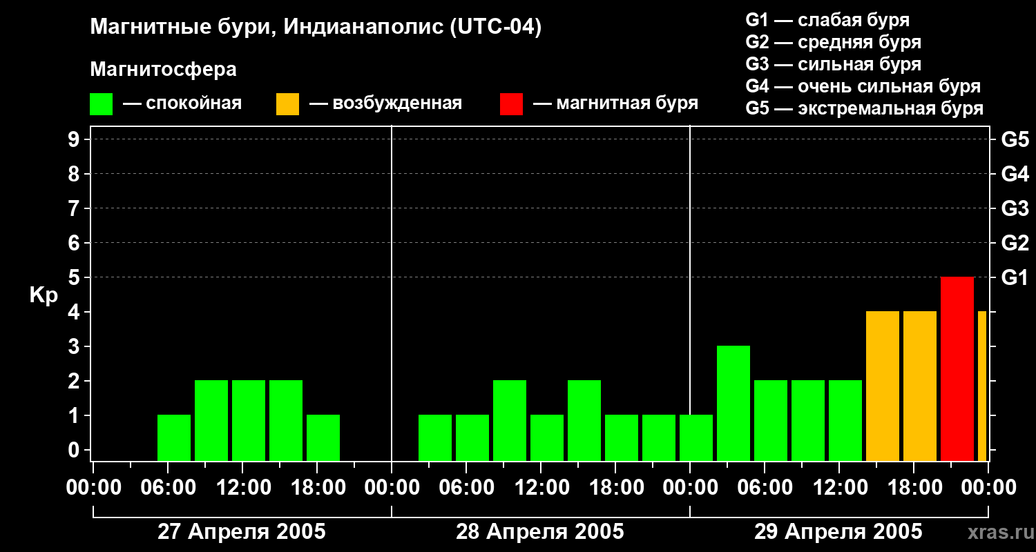 Магнитные бури в Индианаполисе — 29 апреля 2005 года