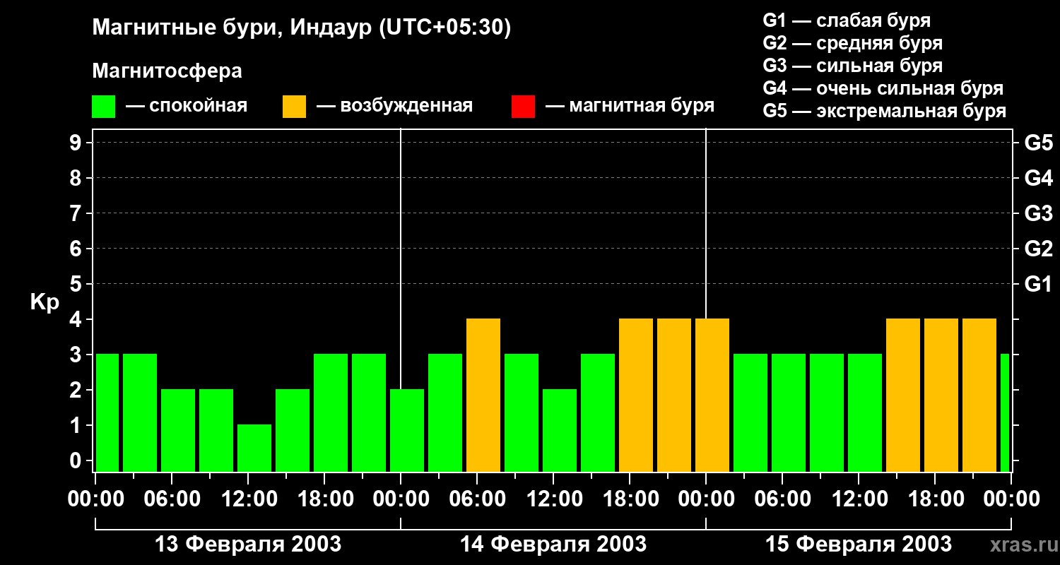 Магнитные бури в Индауре — 15 февраля 2003 года