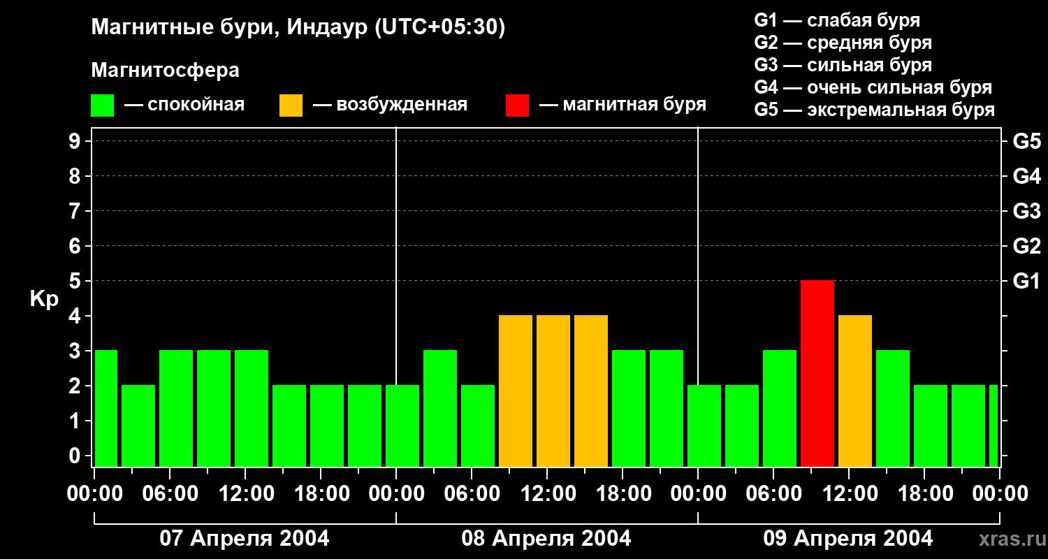 Магнитные бури в Индауре — 9 апреля 2004 года