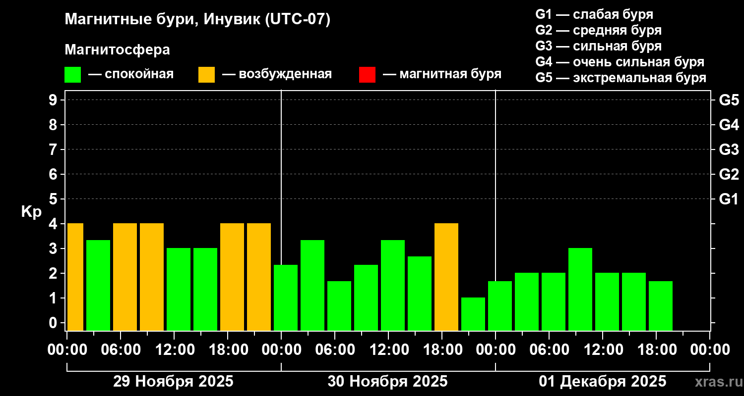 Магнитные бури в Инувике — 1 декабря 2025 года