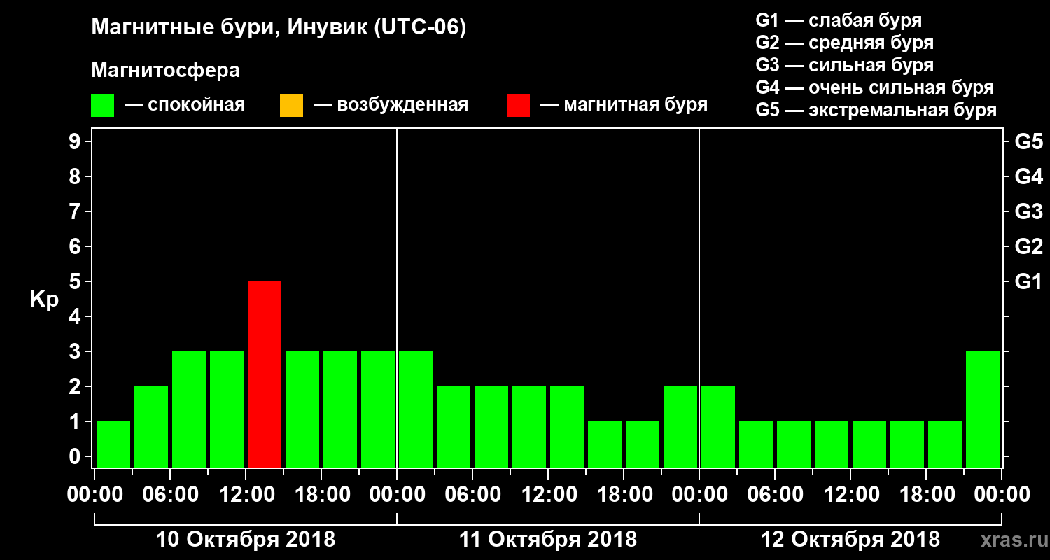 Магнитные бури в Инувике — 12 октября 2018 года