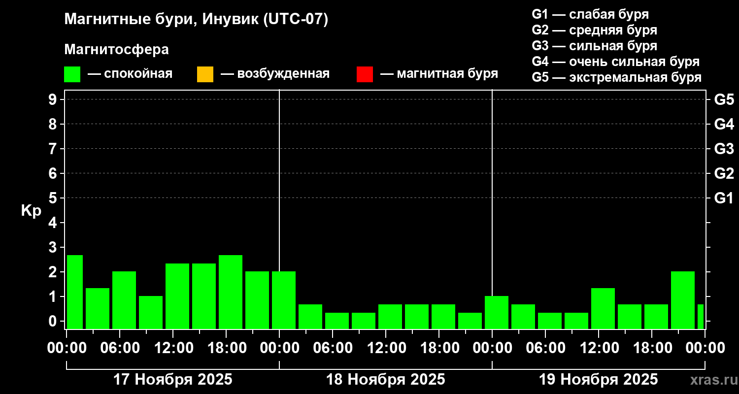 Магнитные бури в Инувике — 19 ноября 2025 года