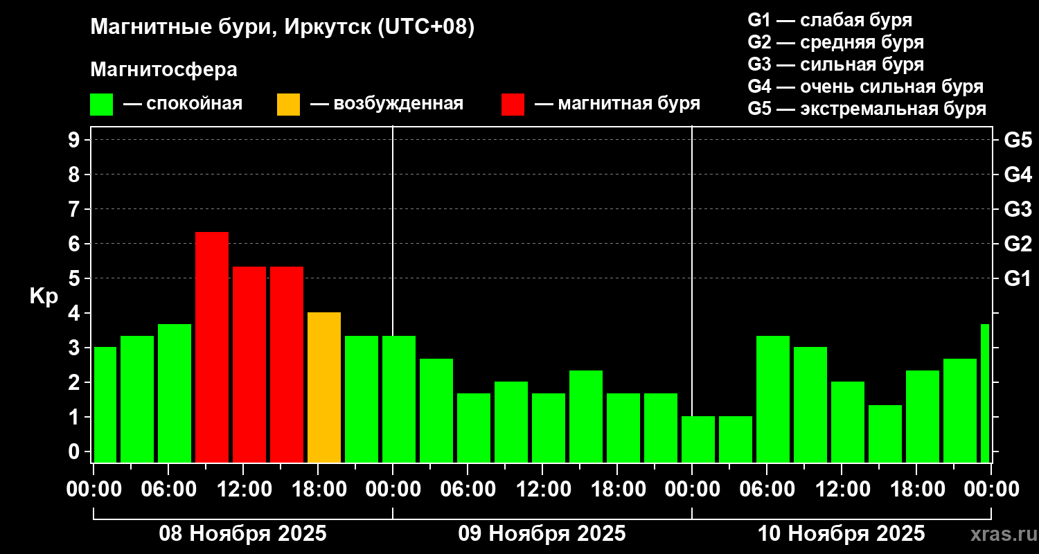 Магнитные бури в Иркутске — 10 ноября 2025 года