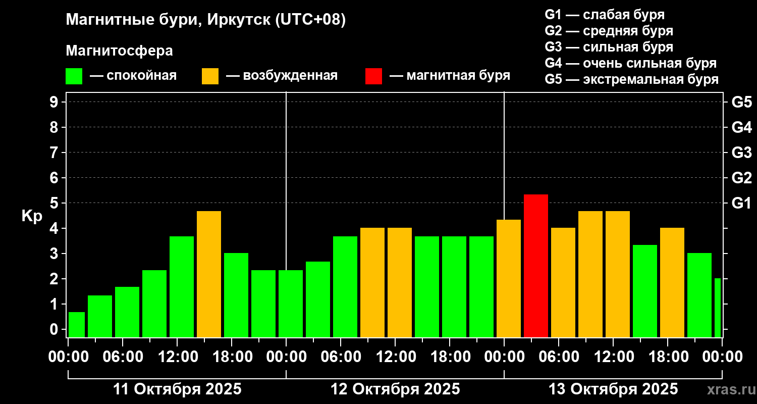 Магнитные бури в Иркутске — 13 октября 2025 года