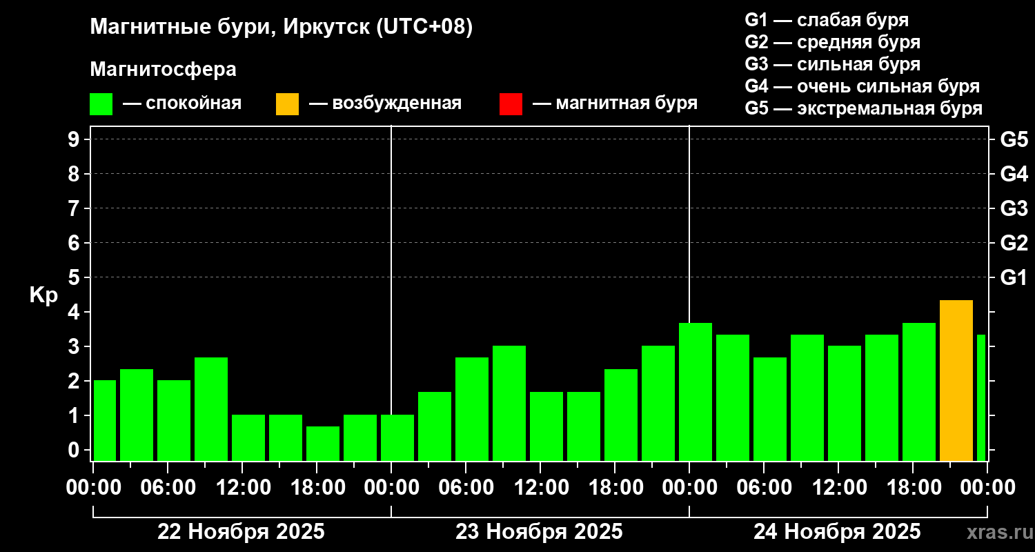 Магнитные бури в Иркутске — 24 ноября 2025 года