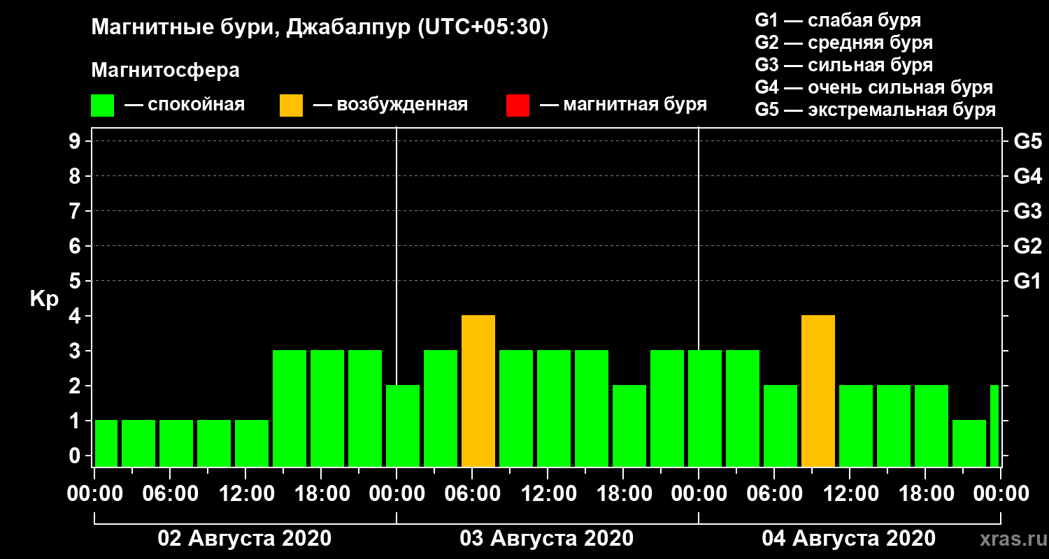Магнитные бури в Джабалпуре 4 августа 2020 года