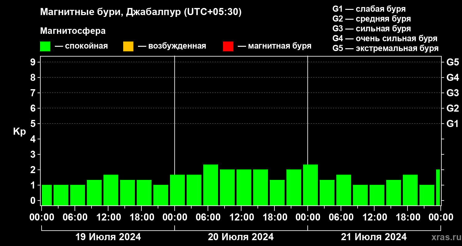 Магнитные бури в Джабалпуре — 21 июля 2024 года