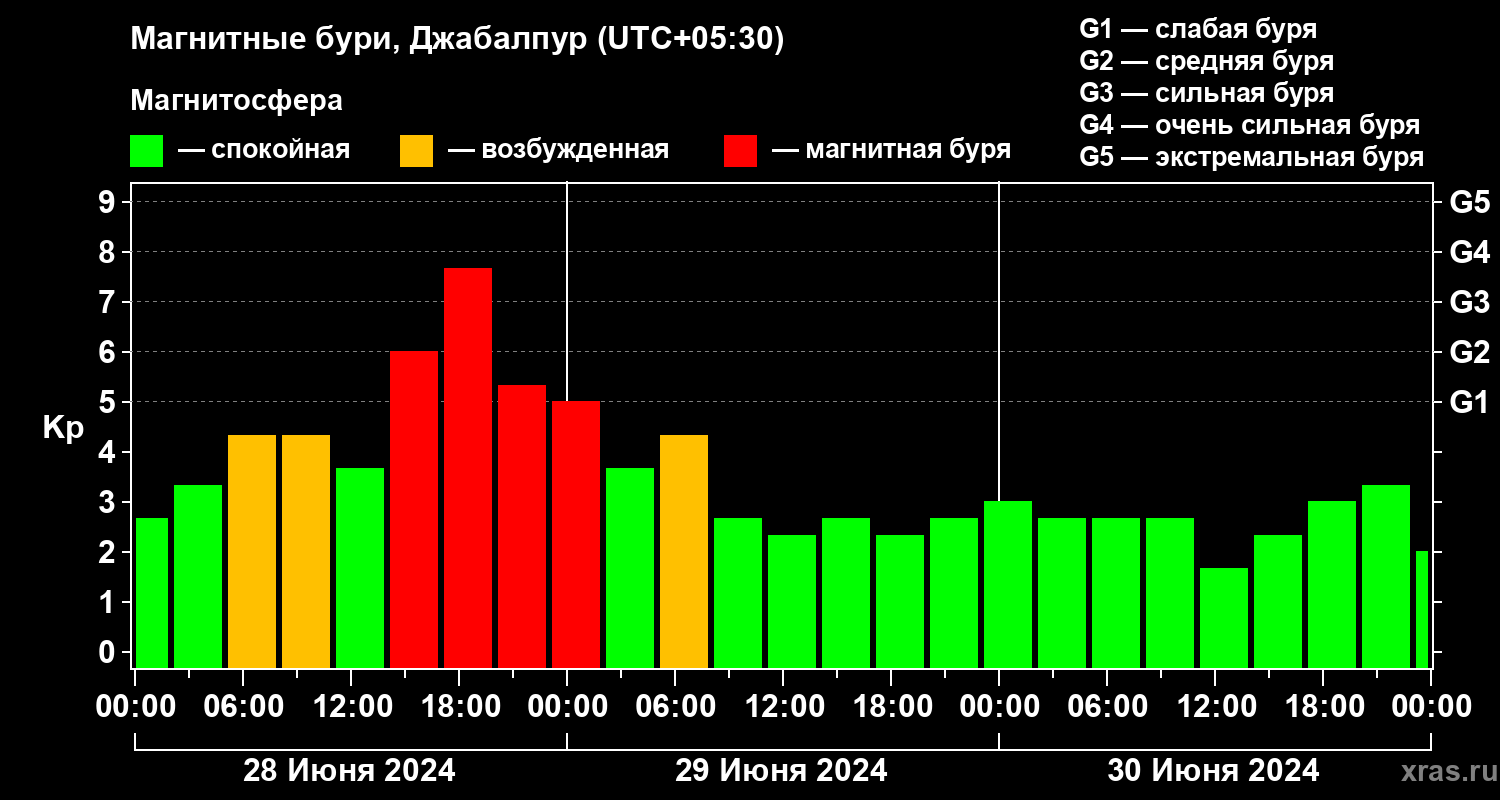 Магнитные бури в Джабалпуре 30 июня 2024 года