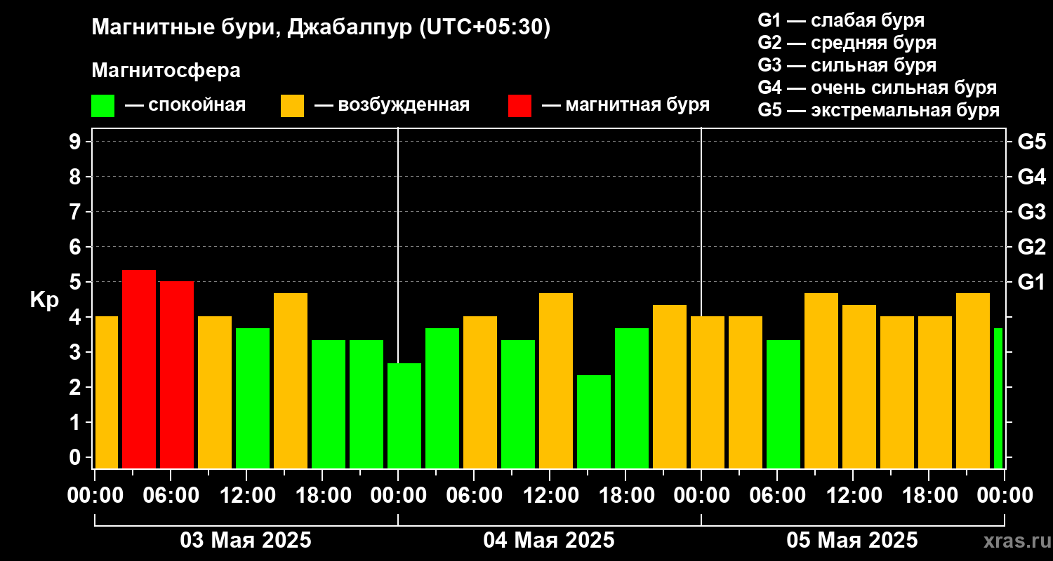 Магнитные бури в Джабалпуре — 5 мая 2025 года
