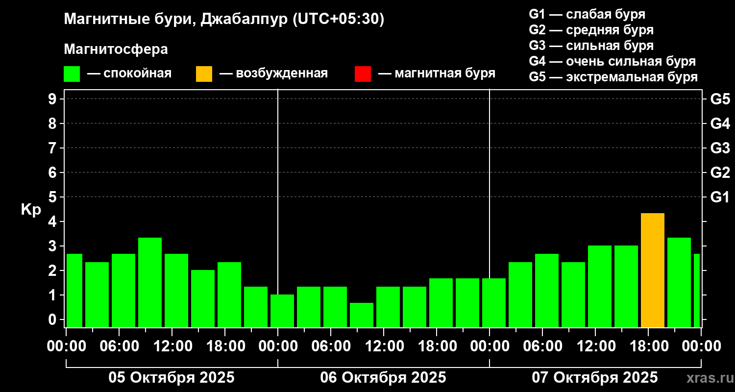 Магнитные бури в Джабалпуре — 7 октября 2025 года