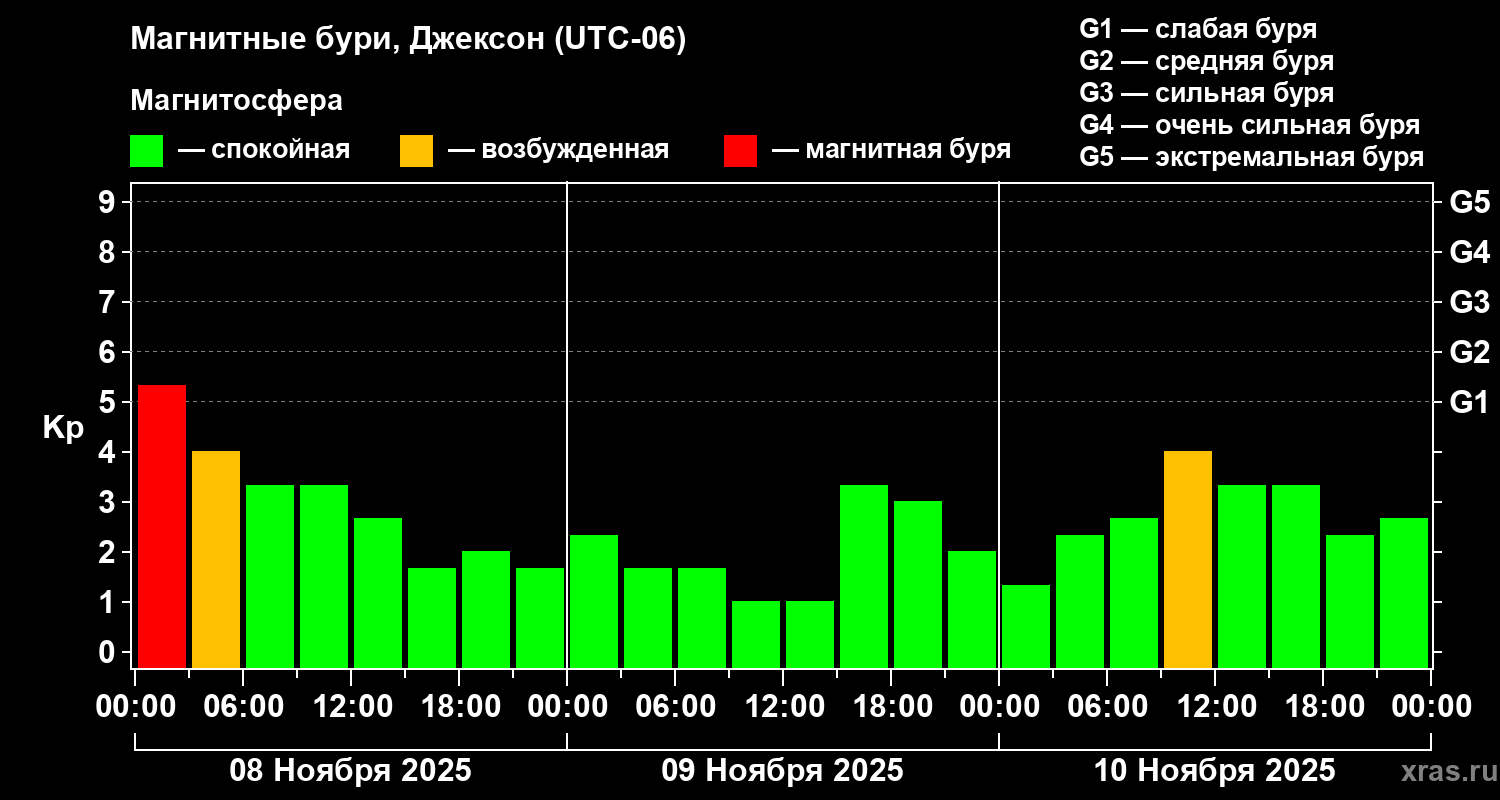 Магнитные бури в Джексоне 10 ноября 2025 года