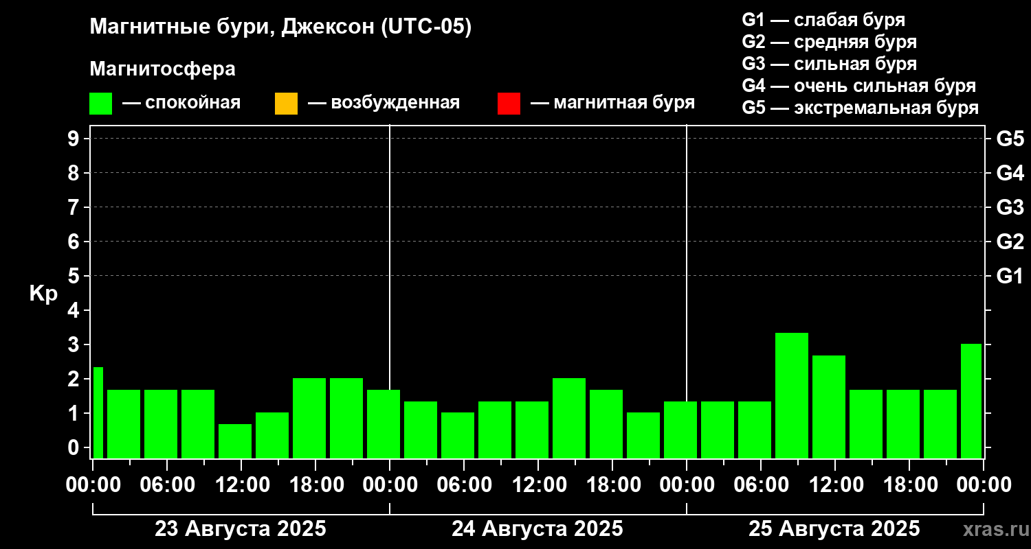 Магнитные бури в Джексоне — 25 августа 2025 года