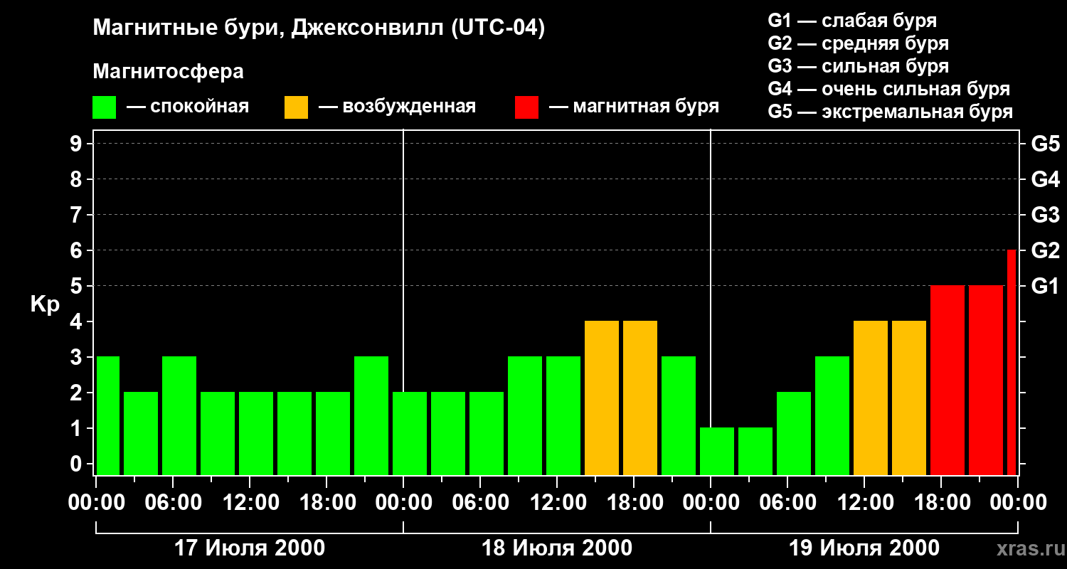 Магнитные бури в Джексонвилле 19 июля 2000 года