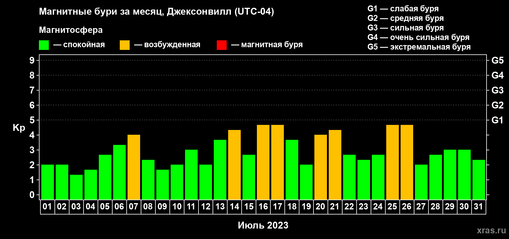 Список магнитных бурь в июле 2023 года