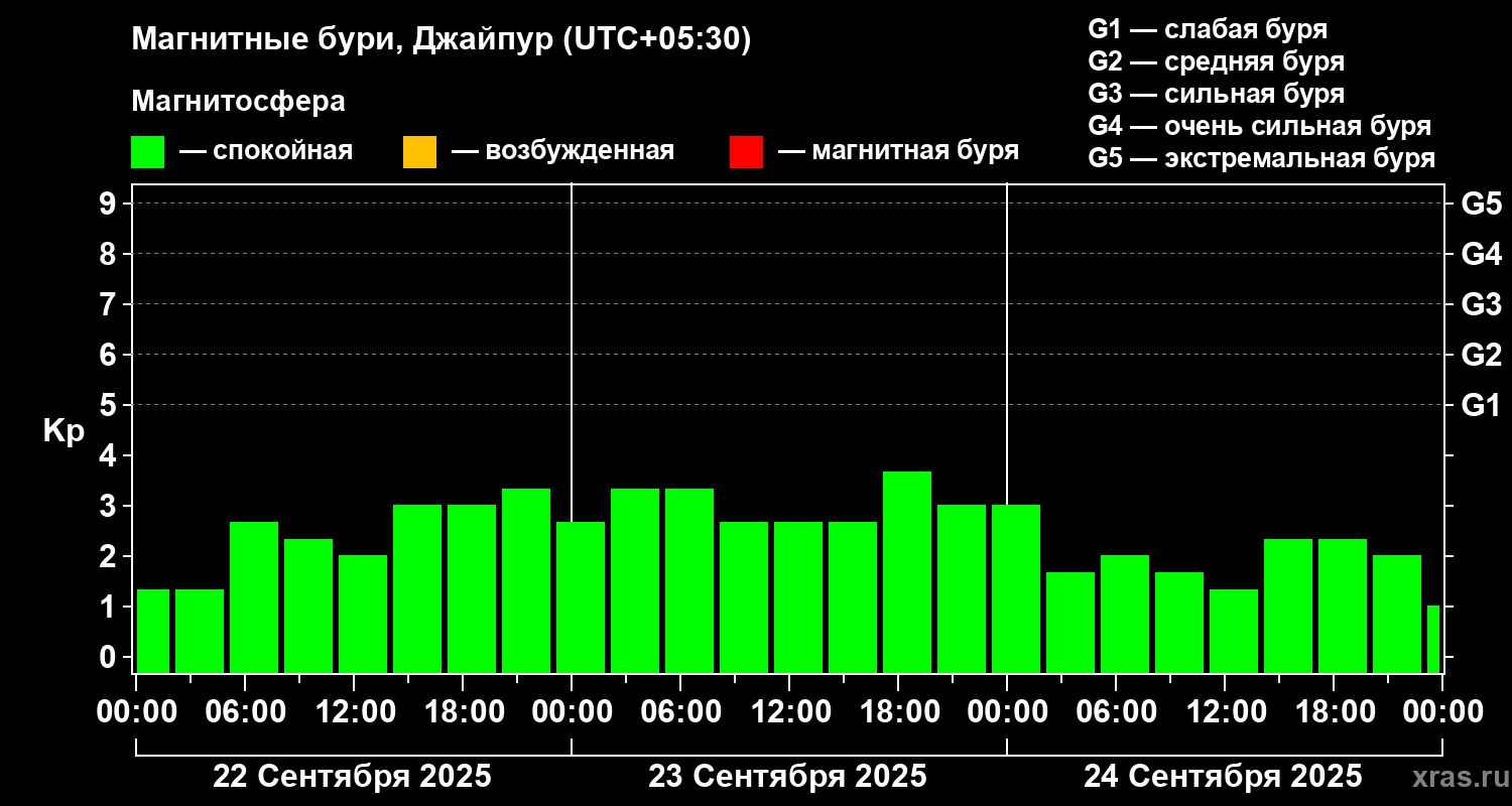 Магнитные бури в Джайпуре 24 сентября 2025 года