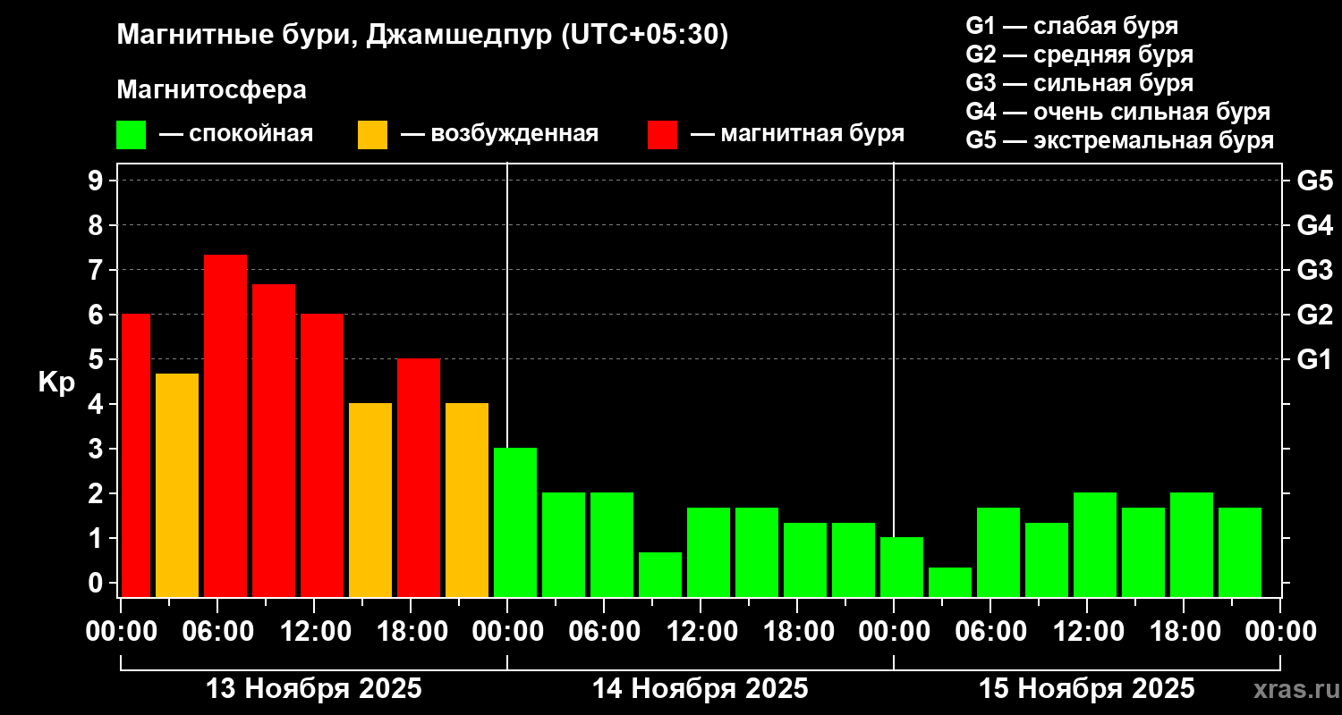 Магнитные бури в Джамшедпуре — 15 ноября 2025 года