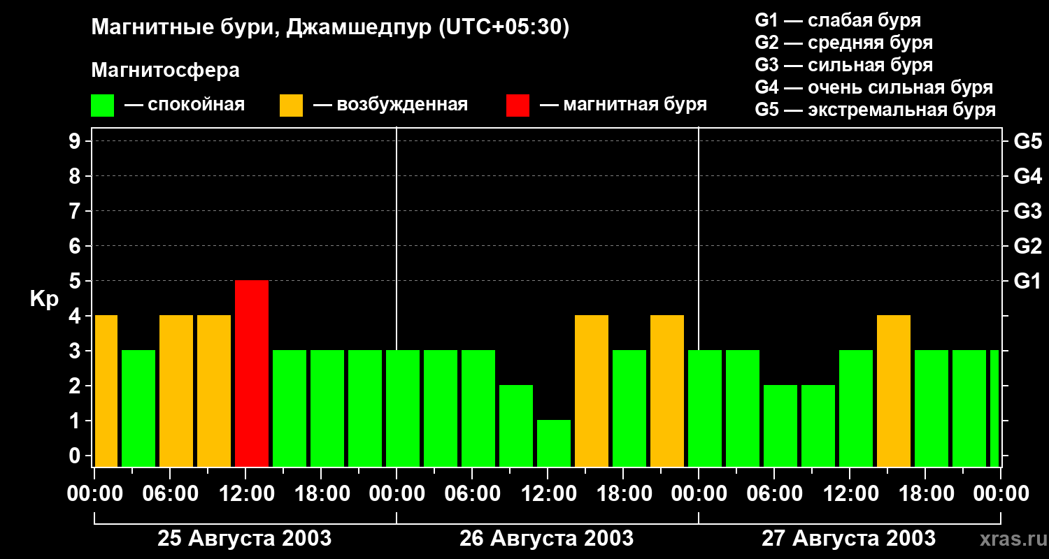 Магнитные бури в Джамшедпуре 27 августа 2003 года