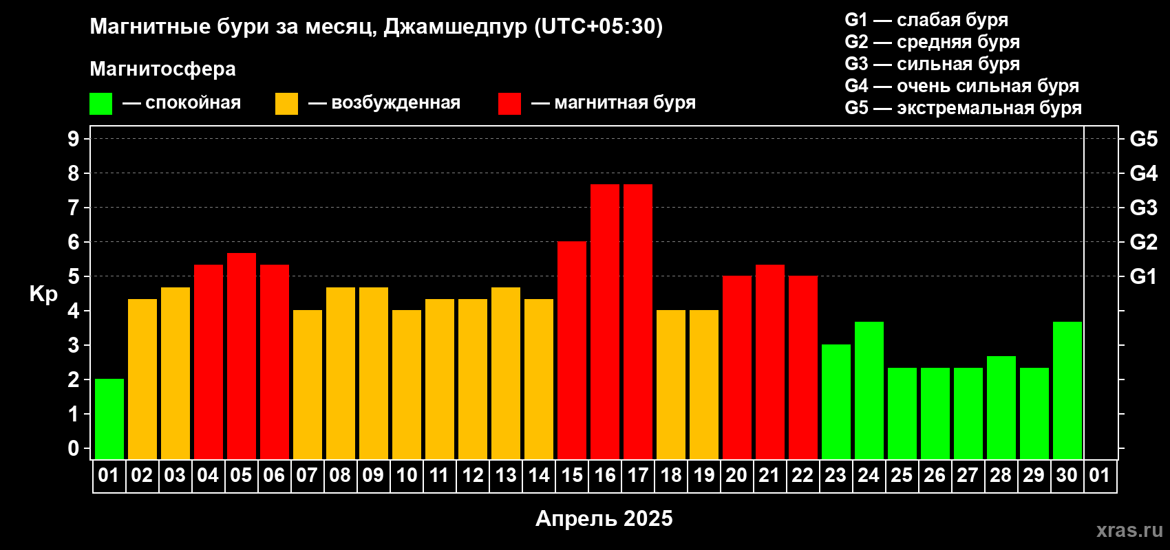 Магнитные бури в Джамшедпуре — 30 апреля 2025 года