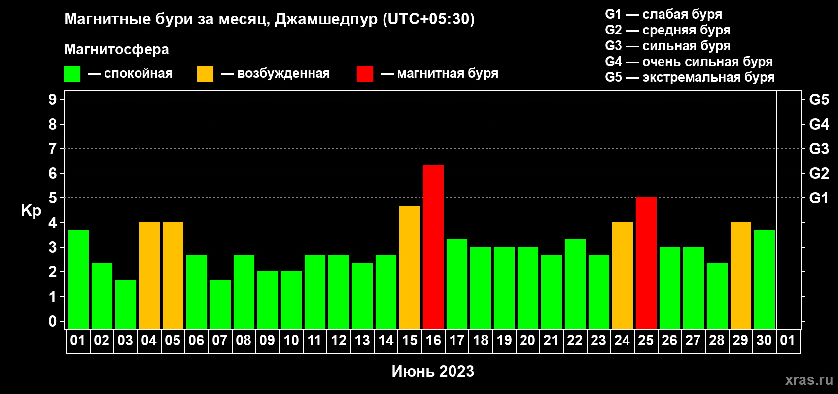 Магнитные бури в Джамшедпуре — 30 июня 2023 года
