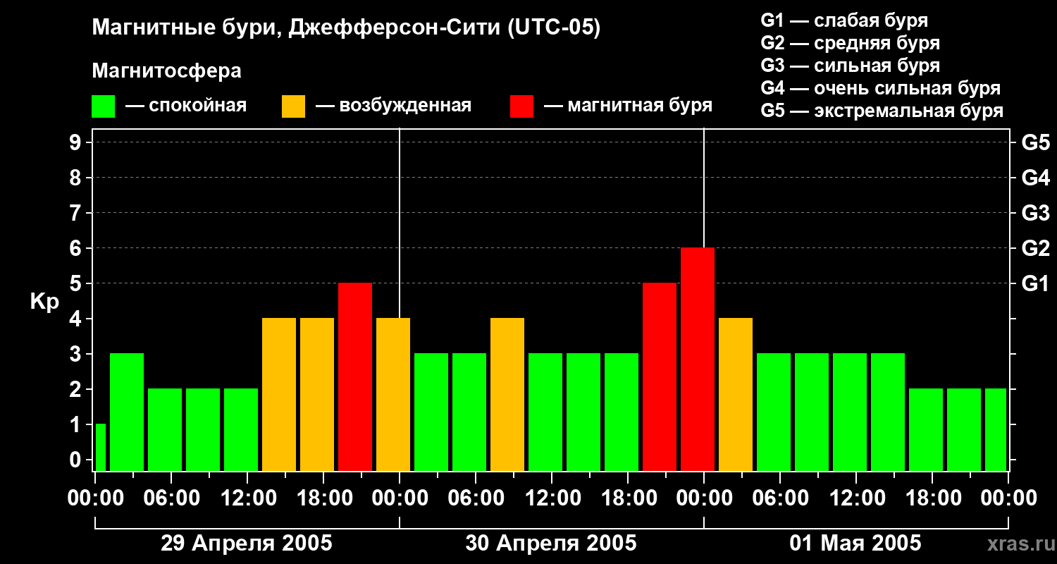 магнитные бури в апреле 2005 года (Джефферсон-Сити)
