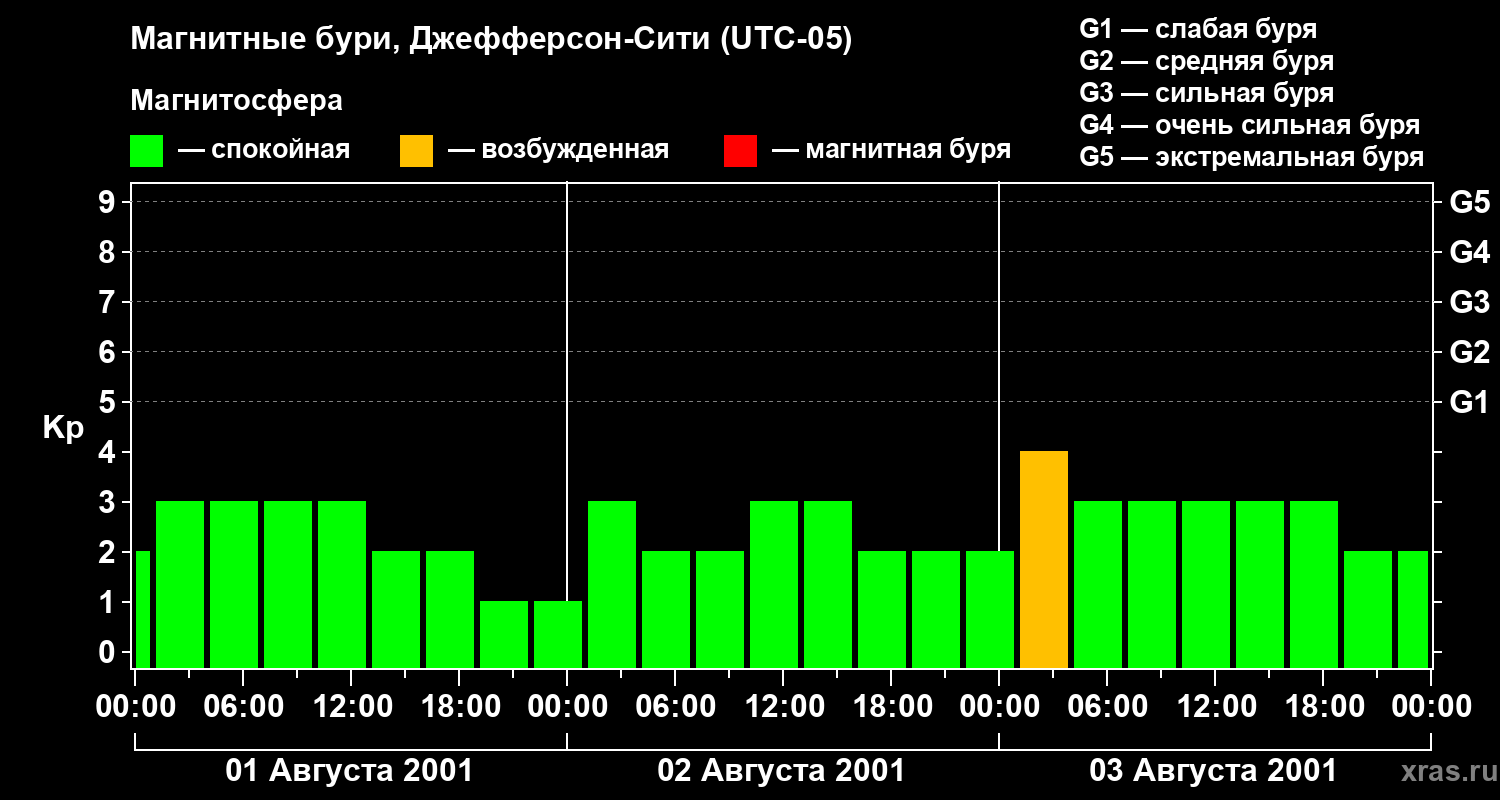 Магнитные бури Джефферсон-Сити 3 августа 2001 года