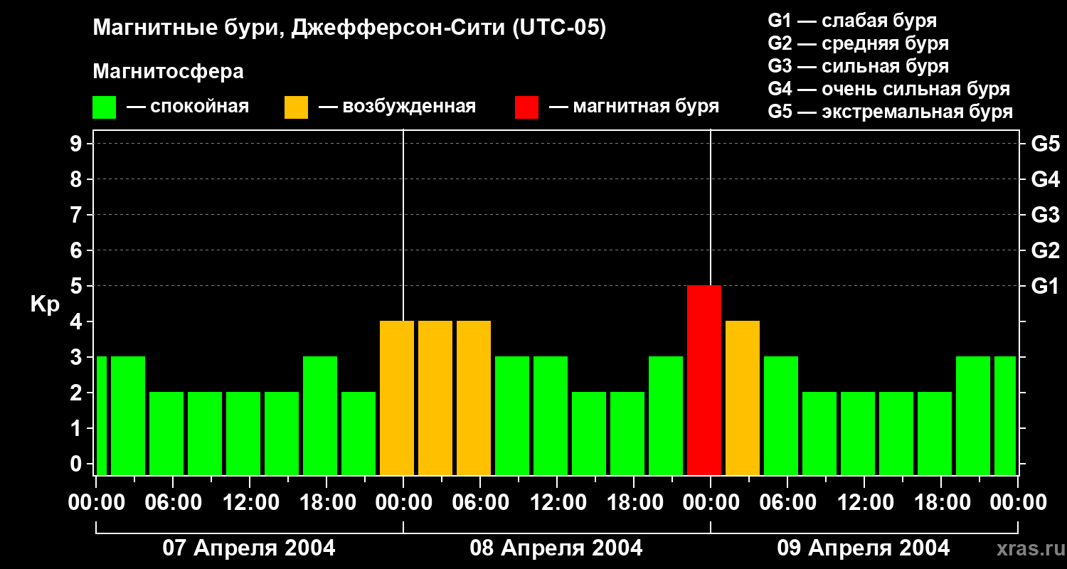 Магнитные бури Джефферсон-Сити 9 апреля 2004 года