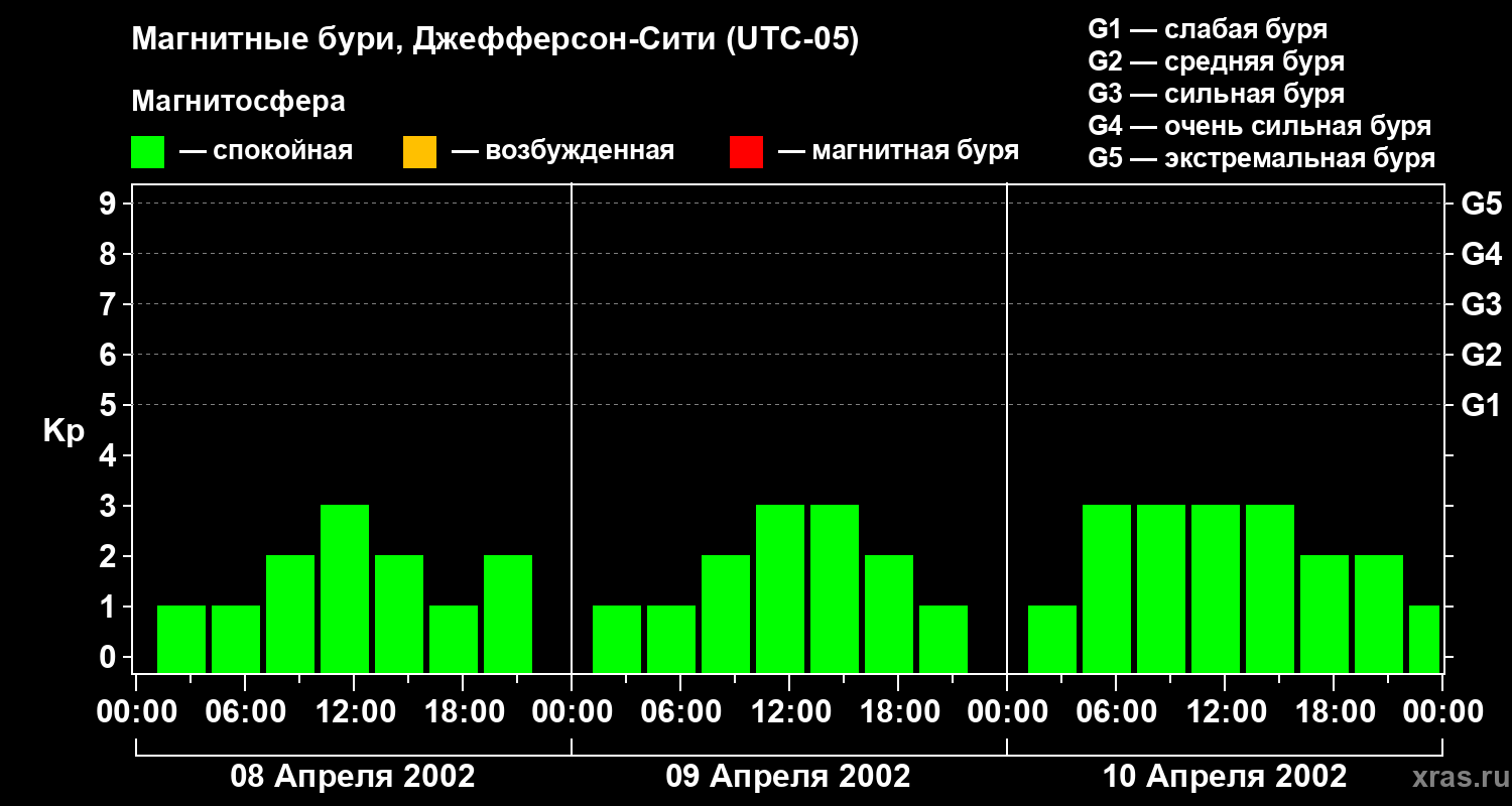 Магнитные бури Джефферсон-Сити 10 апреля 2002 года