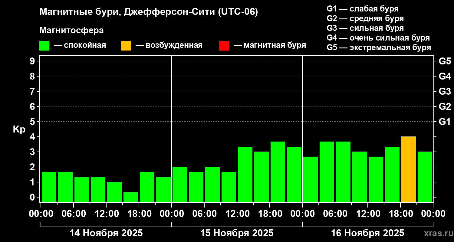 Магнитные бури Джефферсон-Сити 16 ноября 2025 года
