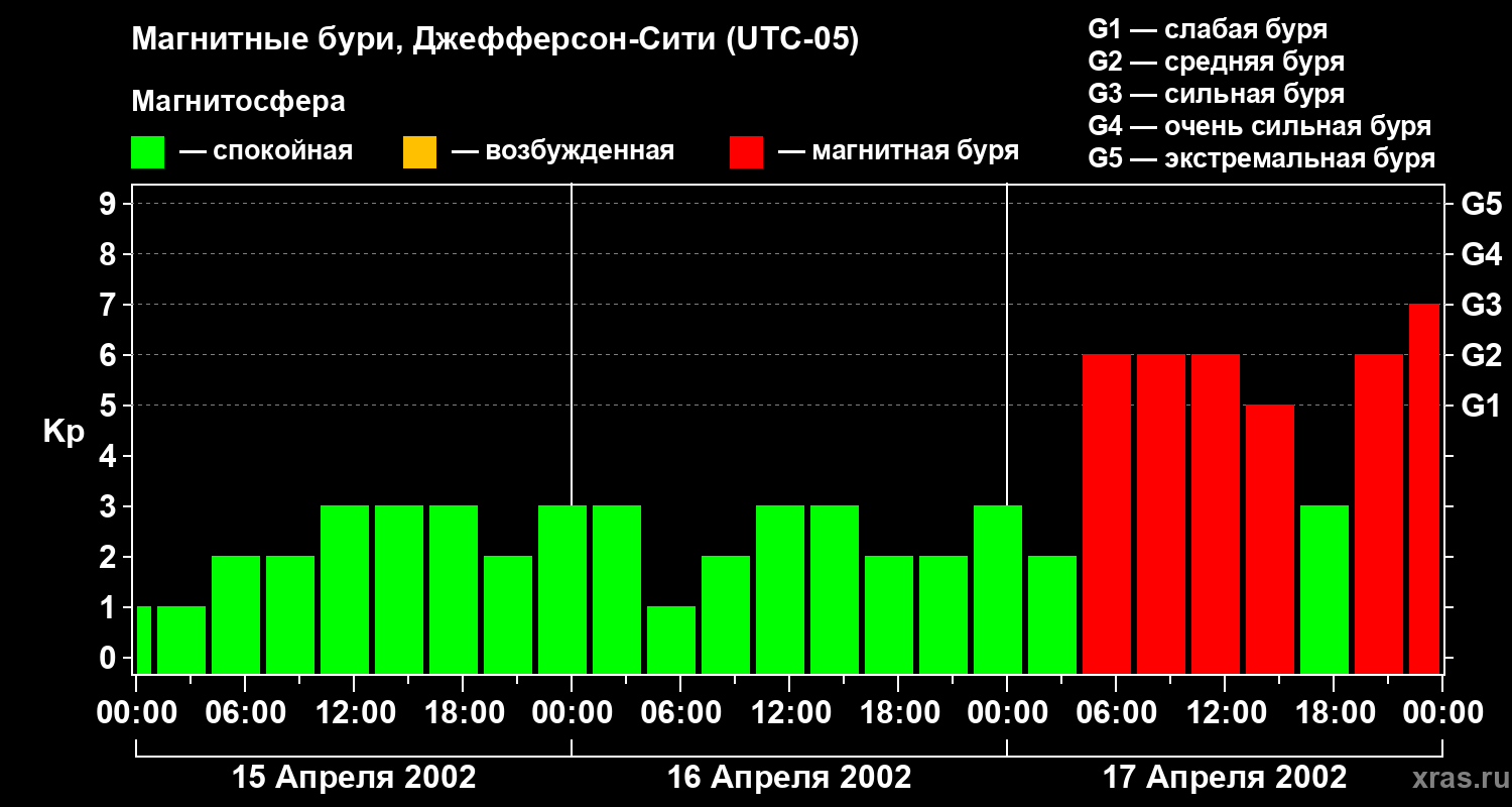 Магнитные бури Джефферсон-Сити 17 апреля 2002 года