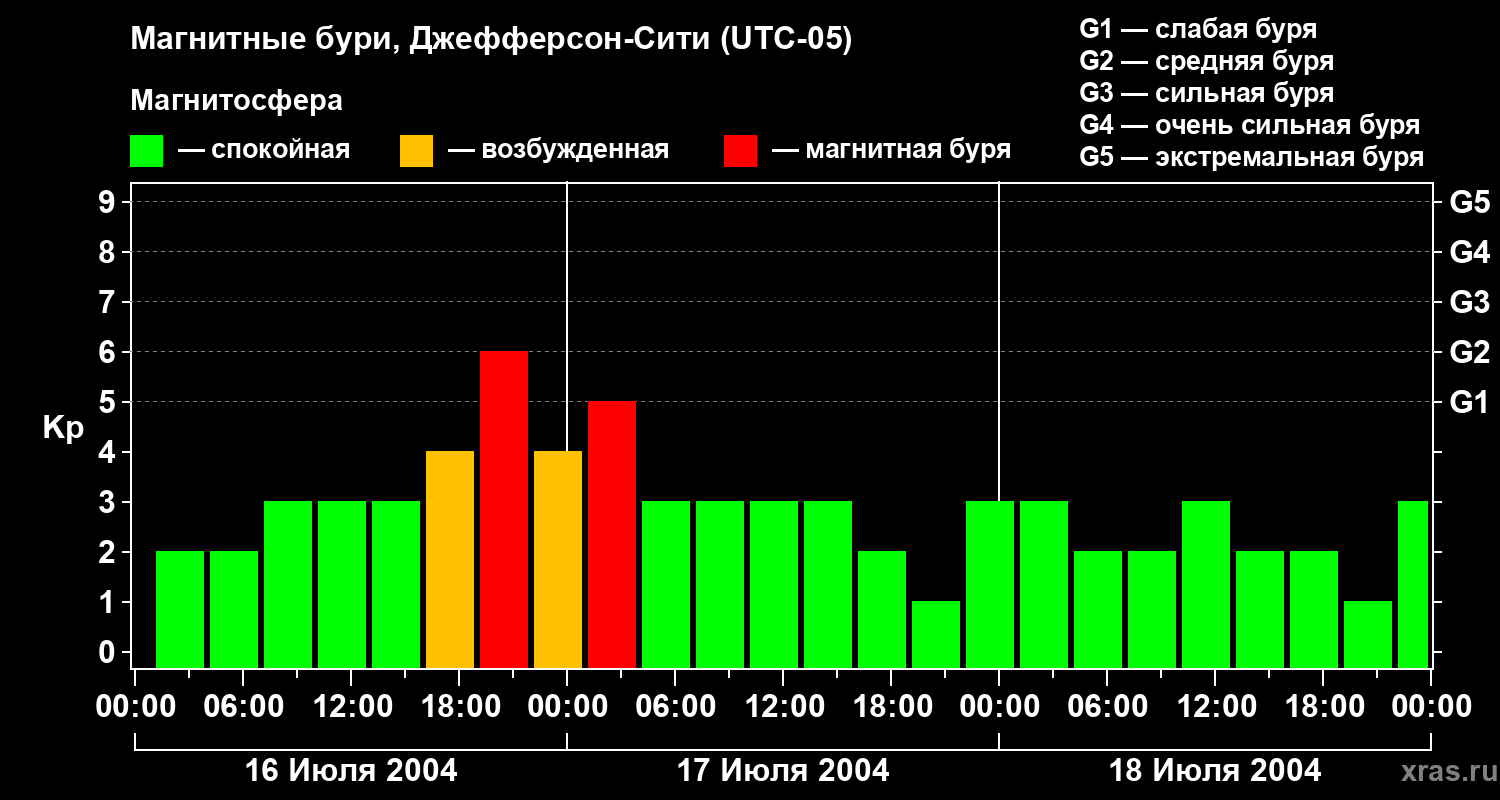 Магнитные бури Джефферсон-Сити 18 июля 2004 года
