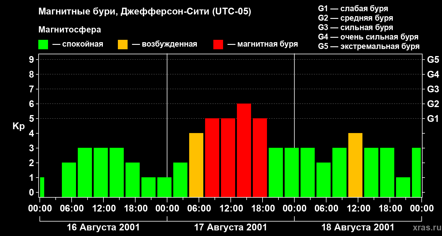Магнитные бури Джефферсон-Сити 18 августа 2001 года