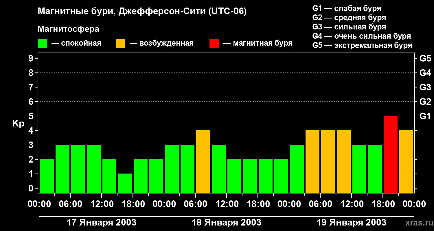Магнитные бури Джефферсон-Сити 19 января 2003 года