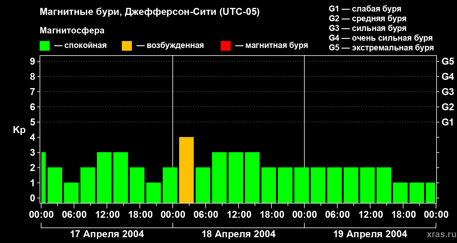 Магнитные бури Джефферсон-Сити 19 апреля 2004 года