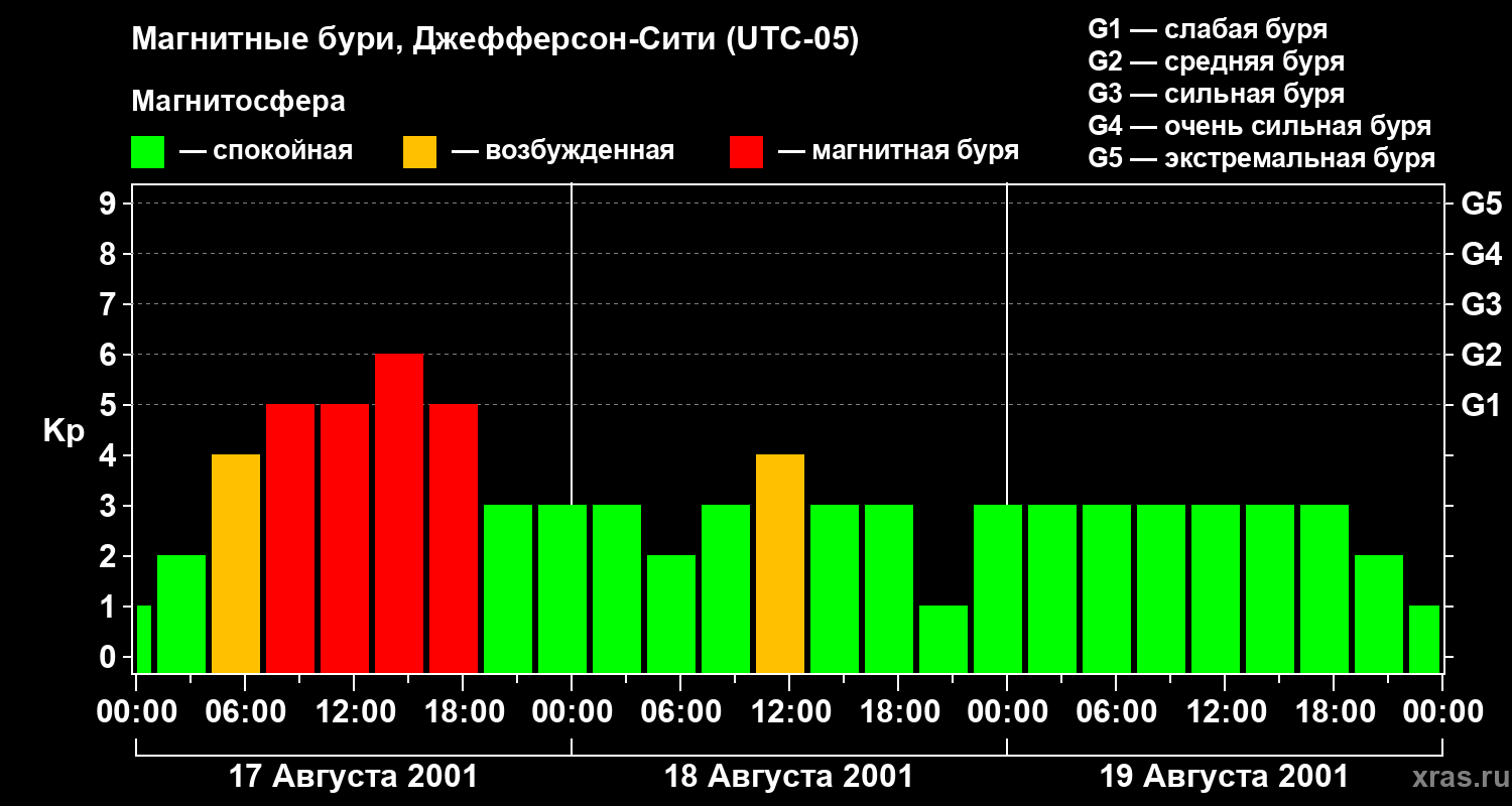 Магнитные бури Джефферсон-Сити 19 августа 2001 года