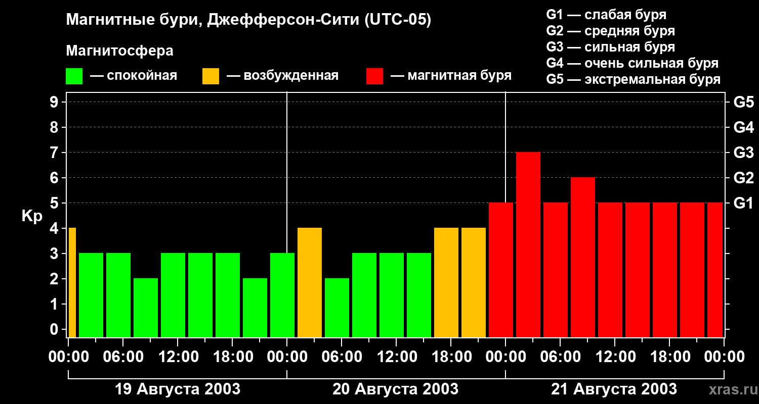Магнитные бури Джефферсон-Сити 21 августа 2003 года